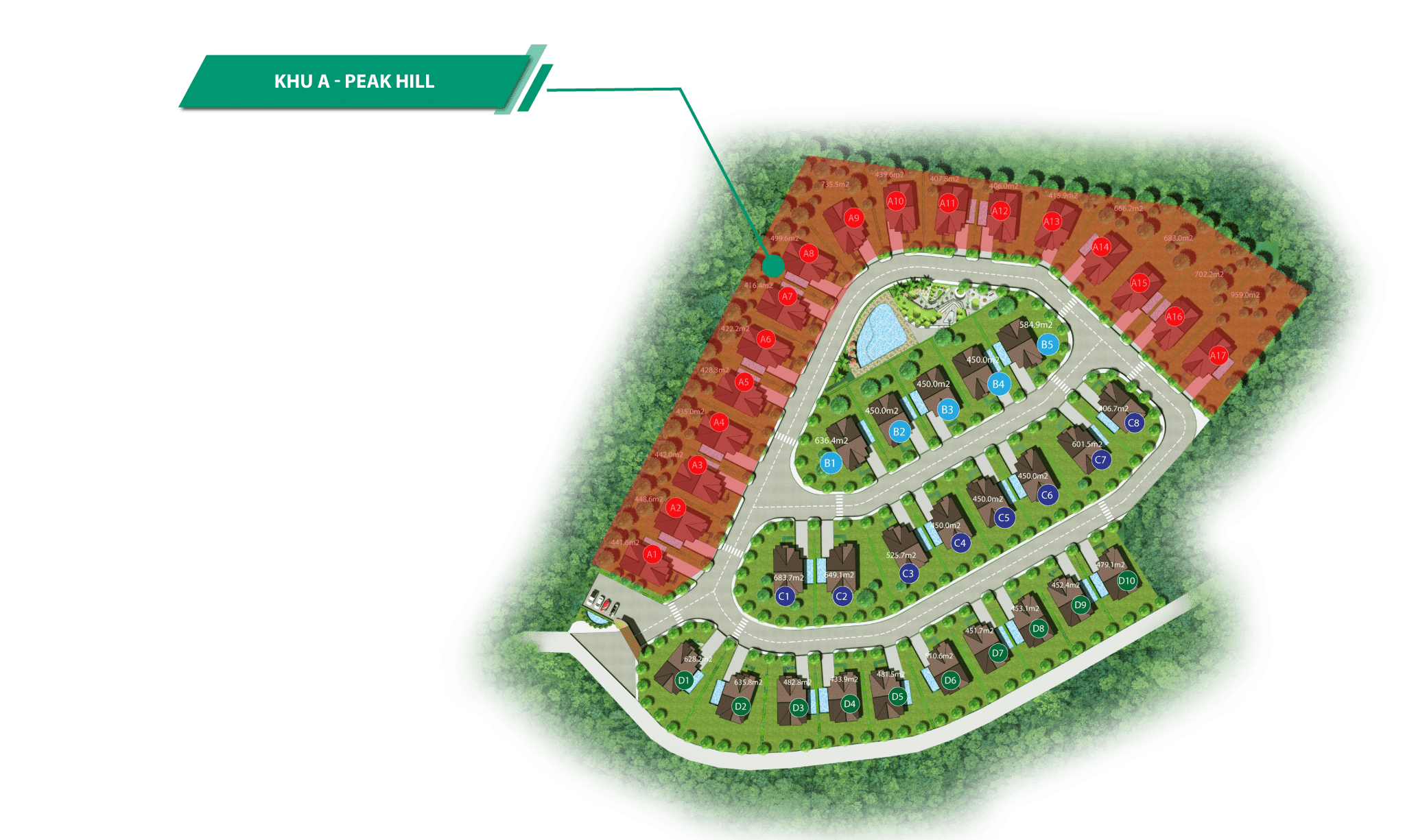 Khu Peak Hill hay còn gọi là khu Đỉnh Đồi là phân khu rộng nhất gồm dãy 17 biệt thự trải dài ôm trọn đỉnh cao nguyên. Tầm nhìn bao quát, nơi cảm nhận rõ nhất về đẹp của thiên nhiên xung quanh. Đặc biệt, tất cả căn biệt thự nơi đây ngoài view thung lũng còn có hướng nhìn thoáng đãng với nhiều mảng xanh của hồ cảnh quan và Công viên nội khu.