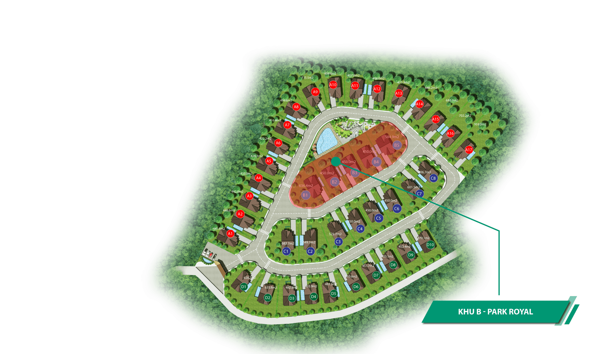 Khu Park Royal – Khu Công Viên Hoàng Gia gồm 5 phân lô biệt thự sở hữu 2 mặt tiền đắt giá. Mặt trước hướng về đường tản bộ nội khu thoáng đãng mặt sau hướng ra công viên Harmony Park trong xanh, hồ cảnh quan Heavenly Lake mang nguồn thịnh vượng, môi trường trong lành, thanh khiết.